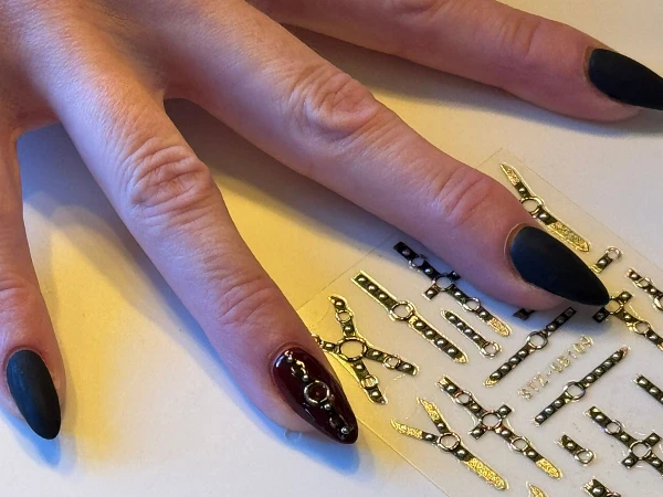 Edle, metallisch glänzende Nail-Stickers im Mini-Harness-Look. Perfekt für alle, die ihrem Style eine subtile, kinky Note geben wollen – ob im Alltag, im Studio oder für besondere Sessions.